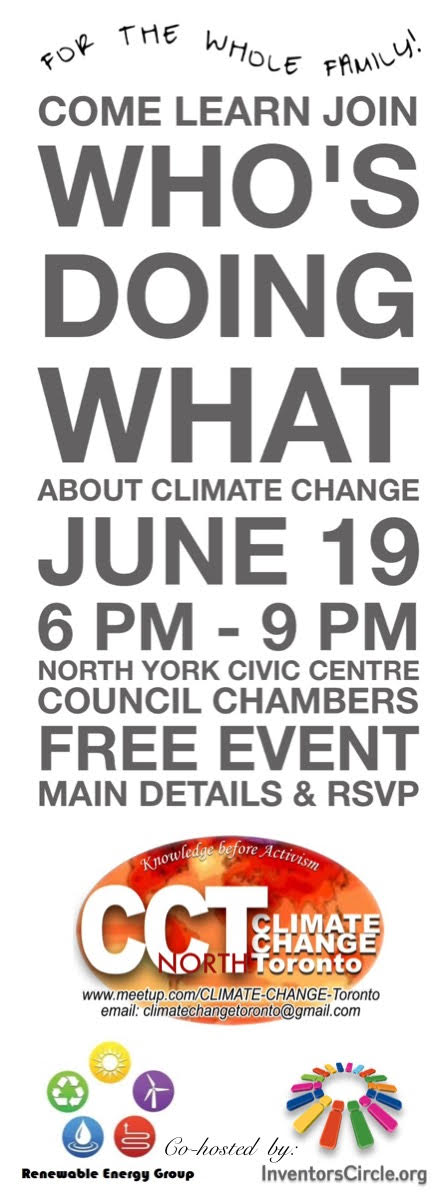 WHO'S DOING WHAT About Climate Change June 19, 2015 - 6pm - 9pm - Council Chambers, North York Civic Centre - Details here